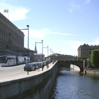 Slottskajen is a passageway running along the water in Gamla Stan, stretching from the northern entrance of the Royal Palace to Mynttorget square. The route is paved with cobblestones and lined with historic stone buildings that once served as warehouses and docks.