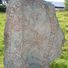 The stone incorporates both Norse and early Christian symbolism through its carved imagery, including a bird figure in the upper center section.