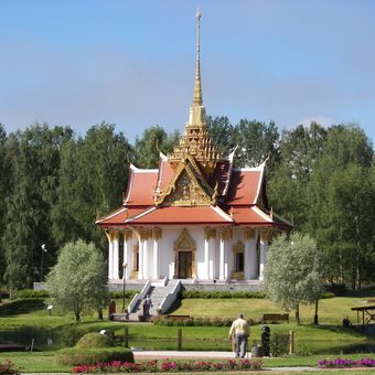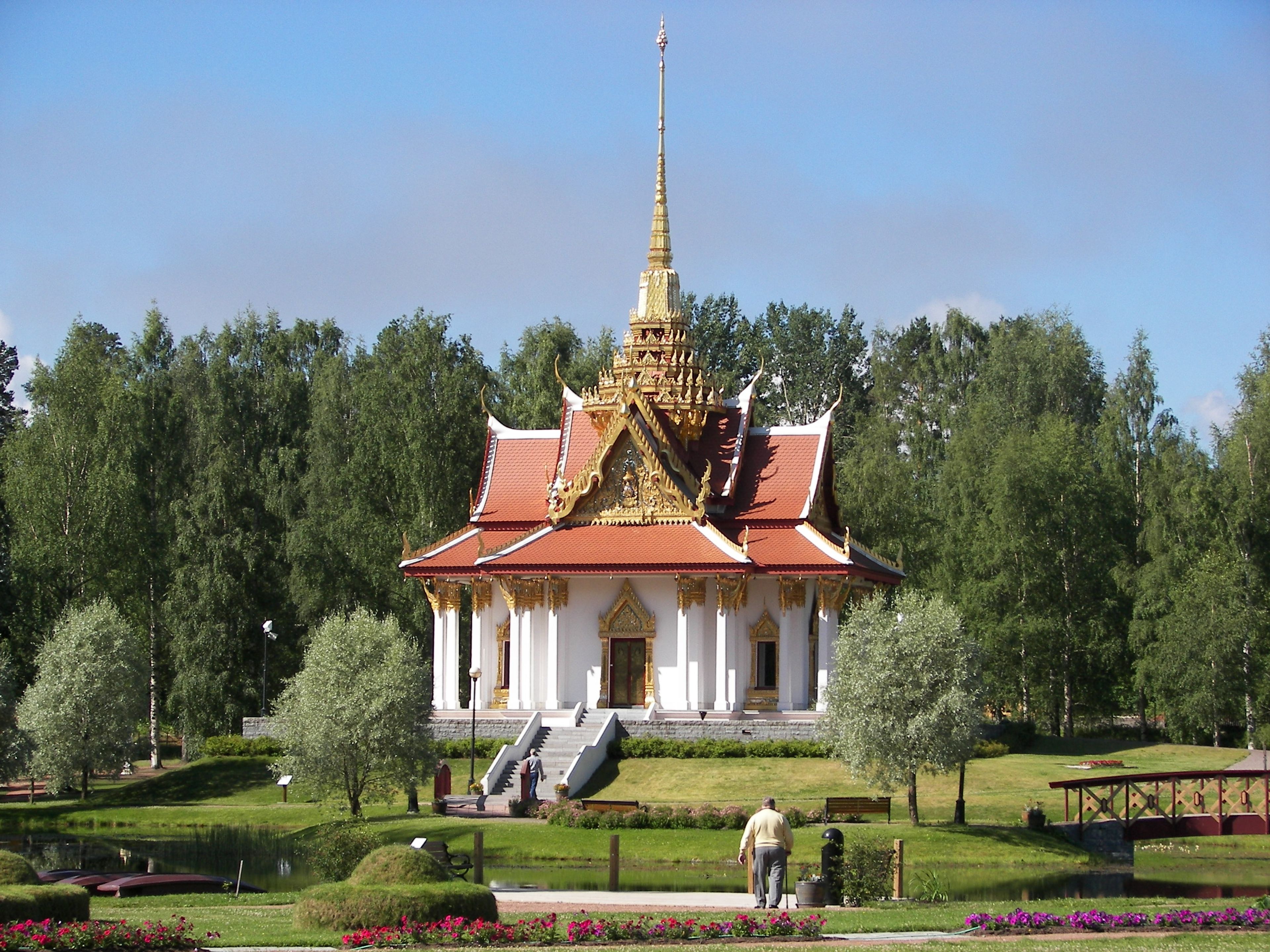 This Thai-style royal pavilion, located over 5000 miles from Thailand, required special construction techniques to adapt to northern Swedish soil conditions.