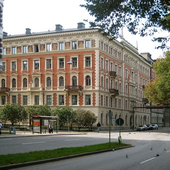 Valhallavägen is a long street in the northeast part of Stockholm's city center, stretching from Roslagstull in the south to Gärdesgatan in the north. It features a wide, open character with tree-lined sections and a mix of elegant buildings from the late 1800s alongside modern structures, serving as a boundary between different neighborhoods like Östermalm and Gärdet.