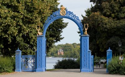 The Blue Gate stands as a formal entrance to Royal Djurgården, featuring architectural elements that reflect mid-19th century Swedish design principles.