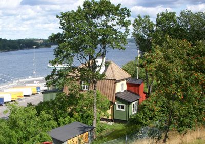 Located on the northern slope of Fåfängan facing Masthamnen, Bergshyddan consists of multiple structures built during different time periods.