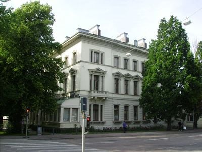 English architect William Allen Boulnois designed this residence in 1862 for Baron Oscar Dickson on a site formerly occupied by the Hallska barracks. The location transitioned from a public institutional space to a private noble residence during the 19th century's urban transformation.