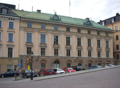 The building currently operates as Helio Slottsbacken, a co-working space located in central Stockholm's historic district near the Royal Palace.