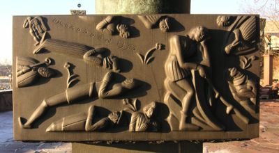 A replica of the central figure and basin reliefs stands at Millesgården museum on Lidingö island, while the original represented Sweden at the 1939 New York World's Fair.