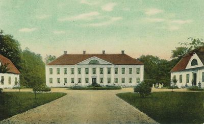 The estate maintains its original structural layout from 1807, including the connected wings that form a continuous facade spanning over 50 meters.