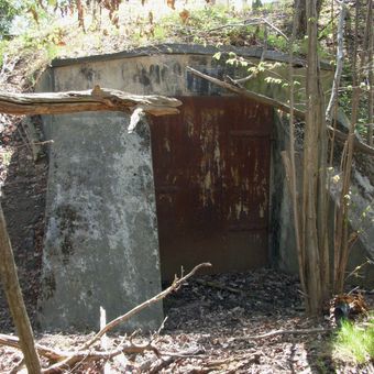 The fort stands near Lake Magelungen with concrete bunkers, earthworks, and defensive structures designed for artillery placement and troop deployment points.