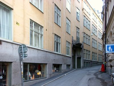 The building can be accessed via Thor Modéns stairs and is documented through fact sheets available on the Stadsholmen website.