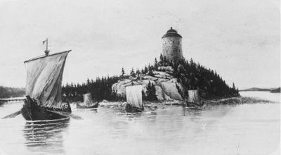 Saxholmen Castle, Medieval castle ruins on Saxholmen island, Kristinehamn, Sweden
