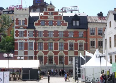 Located near the Slussen metro station entrance, the building provides visitors with direct access to Stockholm's public transportation network.