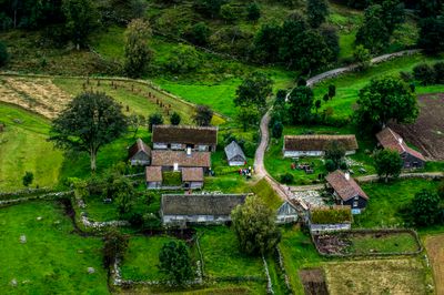 The village layout and buildings maintain their original 19th-century configuration, demonstrating rural Swedish construction methods and farming practices.