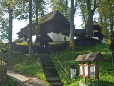 Wooden articular church of Leštiny, Lutheran church building in District of Dolný Kubín, Slovakia.