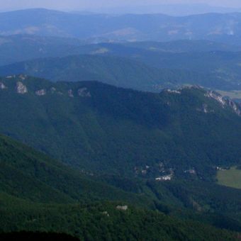 Sokolie summit rises above the Vratna Valley, forming part of a 4.5-kilometer ridge with deep karst valleys on its northern slope.