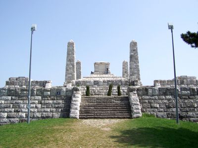The Bradlo Memorial, constructed between 1927 and 1928, features four 12.5-meter obelisks commemorating Milan Rastislav Štefánik and his companions who died in a 1919 aircraft incident.