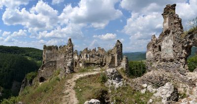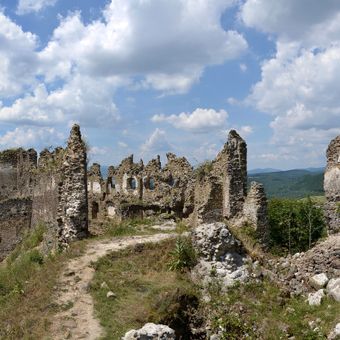 Visitors can reach the castle ruins by following a marked green trail from Šášovské Podhradie village, with the hike taking approximately 15 minutes.