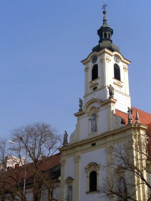 Kostol Navštívenia Panny Márie a kláštor Milosrdných bratov, Baroque church in Old Town of Bratislava, Slovakia.
