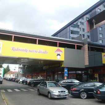Radošinské naivné divadlo is a theatre company in Bratislava that performs in a contemporary building on Zahradnicka Street. The productions examine social phenomena through comedy and humorous storytelling.