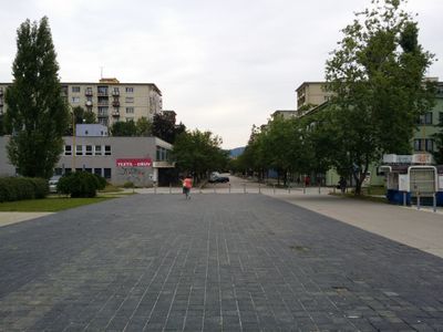The district connects to Žilina's main transportation network through multiple bus lines and provides essential services including shops, schools, and medical facilities.