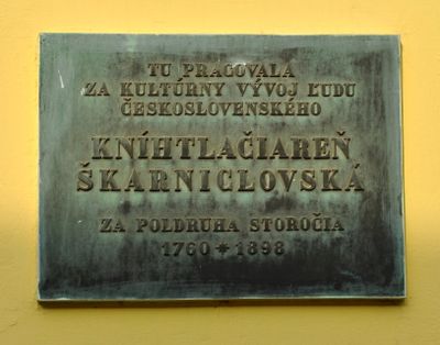 Škarniclovská tlač. , tabuľa pamätná, národná kultúrna pamiatka v obci Skalica, okrese Skalica
