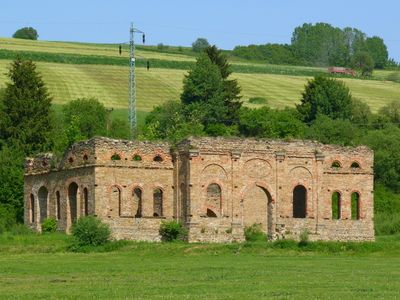 The technical monument features a preserved facade with triangular bays, district walls, a smelting furnace, and remnants of iron manufacturing infrastructure.