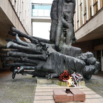 Victims are warned, sculpture in the Museum of Slovak national uprising