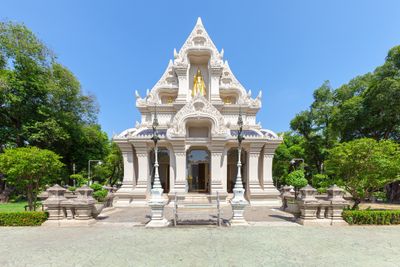 Visitors can reach the temple via boat service along the canal or by taking public transportation to Wachira Phayaban district.