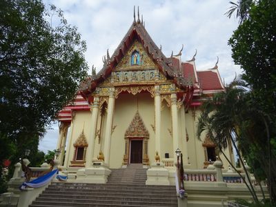 The interior murals show Buddhist teachings and local stories that worshippers venerate here. You can observe these artworks while people pray and see how the community uses them to pass down traditions.