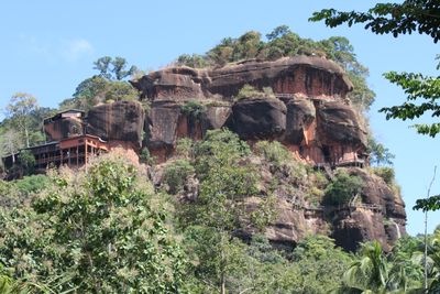 A Buddhist temple, Wat Phu Thok, occupies a cave near the top of Phu Thok Noi, combining natural geology with religious architecture.