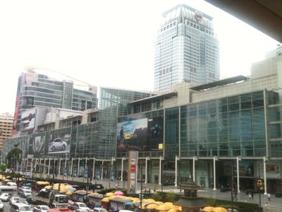 The tower serves as part of Thailand's largest shopping complex, symbolizing Bangkok's transformation into a modern metropolitan business hub in Southeast Asia.