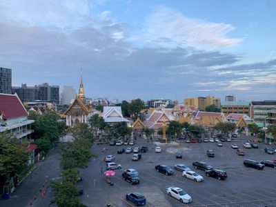 The temple stands next to Ekkamai BTS station on Sukhumvit Road, featuring a large pagoda that houses sacred Buddhist relics.