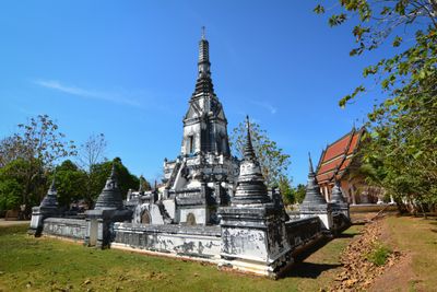 The Phrathat Chedi Sri Phothong contains neck relics of Buddha and multiple Buddha images, receiving its name from King Bhumiphol in 1995.