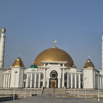French construction company Bouygues completed this religious complex in October 2004 under the direction of President Saparmurat Niyazov of Turkmenistan.