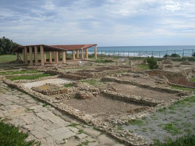 Neapolis is an archaeological site on the Tunisian Mediterranean coast containing Roman-era production facilities from ancient times. The remains include numerous basins and storage tanks that were used for processing fish and manufacturing fermented sauce.