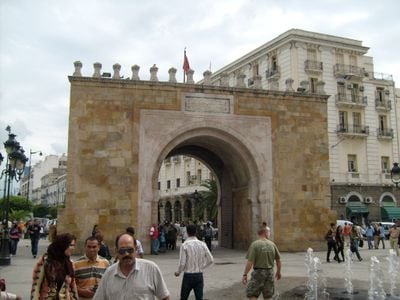Visitors enter the Medina through this gate to access traditional markets, craft shops, and restaurants located within the winding streets of old Tunis.