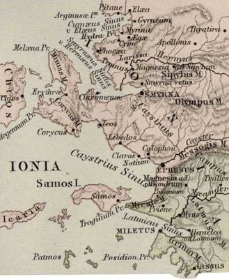 Colophon achieved prominence as an Ionian Greek settlement in the 8th century BC before transferring its population to Ephesus under Lysimachus in 302 BC.