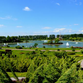 The 400,000 square meter park contains a pirate ship, science museum, planetarium, zoo, Japanese garden, and artificial lake with recreational areas.