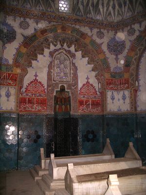 The tomb stands within the Muradiye Complex and features a hexagonal plan with sides measuring approximately 23 feet (7 meters) each, decorated with brick and stone patterns.