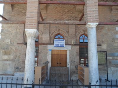 Kileci Mosque is a house of worship from the Seljuk period featuring a square floor plan with a narrow entrance chamber on its north side. The interior incorporates columns from an earlier Byzantine structure that were integrated into the building.
