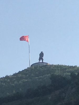 The 22-meter tall steel and copper statue of Mustafa Kemal Atatürk stands on Atatepe hill, overlooking the city of Artvin.