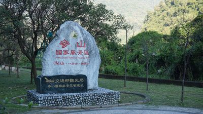 Tri-Mountain National Scenic Area is a mountain network in central Taiwan spanning five administrative regions and combining three separate mountain zones with different landscapes. The area features varying elevations, cultivated regions, and natural formations that together create a diverse patchwork of terrain.
