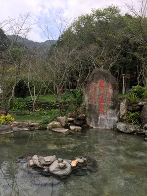 Lushan Hot Spring features bi-carbonate springs reaching temperatures between 75 to 90 degrees Celsius, making it possible to cook food directly in the water.
