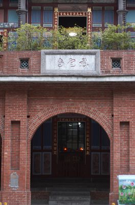 The temple incorporates elements of Taiwanese-Western architectural styles, representing an early 20th-century approach to religious building design.