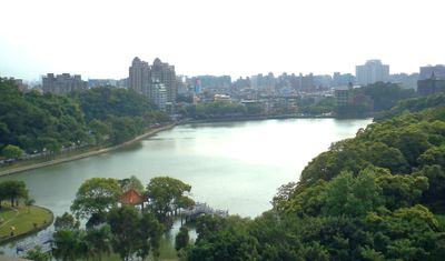 The park, established in 1987, occupies the site of a former natural lake that characterized the agricultural landscape of old Neihu District.