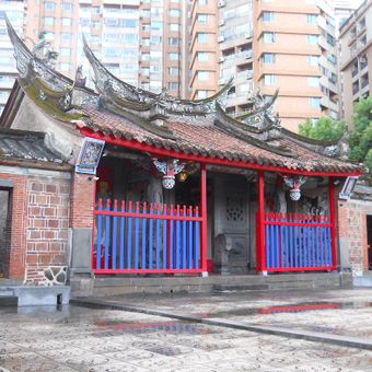Yinshan Temple is a Chinese shrine in Tamsui with a symmetrical layout comprising three entrance halls, two side corridors, and a central shrine hall flanked by protective wing rooms. The design creates a balanced flow through the interior spaces following traditional architectural principles.