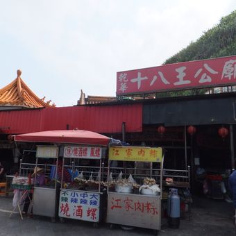 Ganhua Eighteen Lords Temple is a Chinese place of worship in Ganhua Village, New Taipei City, Taiwan, standing beside the Jinshan Nuclear Power Plant along Provincial Highway 2. The structure displays carved wooden beams, painted roof tiles, and stone figures typical of northern coastal shrines.