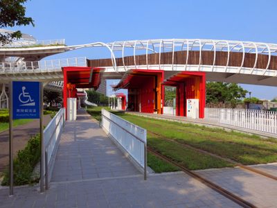 The bridge design integrates natural elements through its vine-like structure and upper garden area, reflecting Taiwan's appreciation for green spaces.