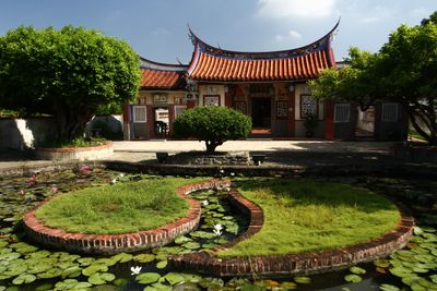 The Yang Family Ancestral Hall features traditional Hakka architecture with a quadrangle shape and includes a heart-shaped Tai chi pond at the entrance.