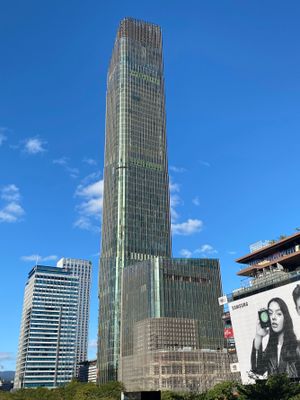 The building contains 87,464 square meters of floor space, with five basement levels and direct connections to public transportation networks.