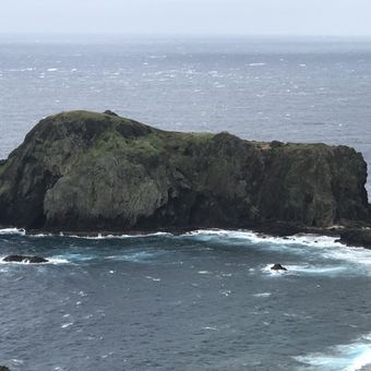 The volcanic rock formation stands on Green Island's eastern coastline, featuring a natural shape that displays similarities to a Pekingese dog's profile.