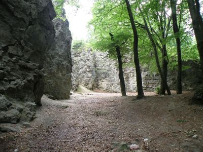 Chortovi Skeli, Forest reserve with rock formations in Lviv Oblast, Ukraine.